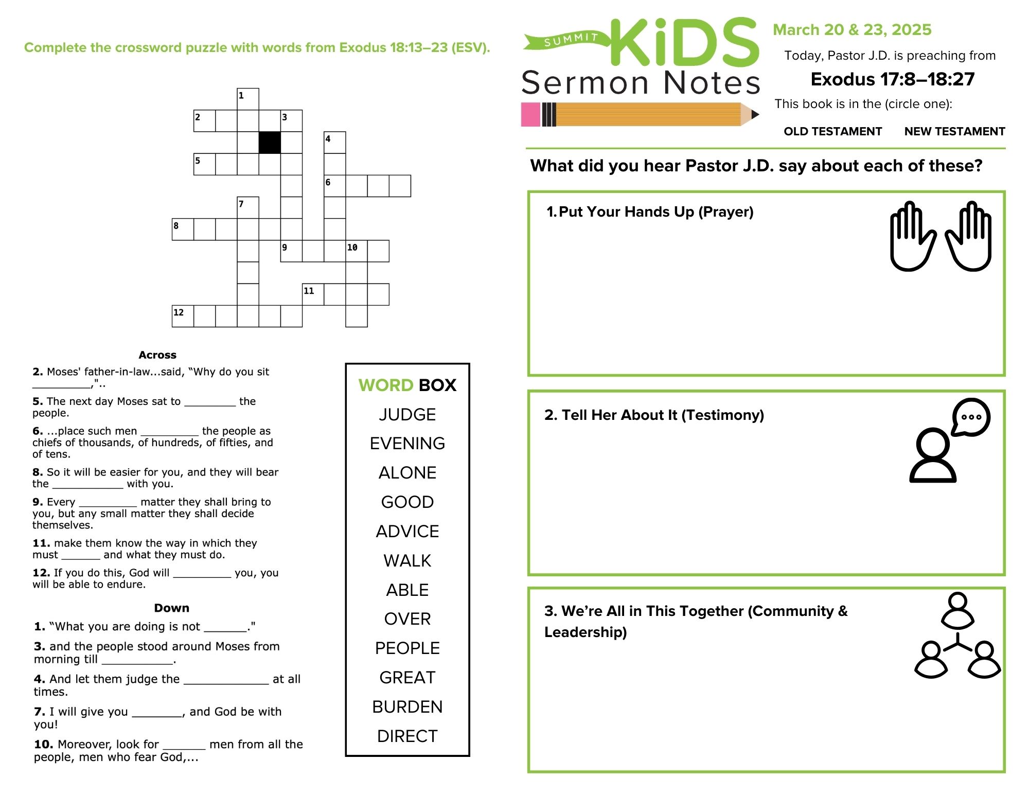 We all have an important role to play in the body of believers. This truth, though seemingly ingrained in us now, was something that God had to intentionally teach the Israelites. In this week's message from Exodus 17–18, Pastor J.D. takes us through three foundational lessons that God taught the Israelites about life in the redeemed community. In showing them that everything wasn't meant to be centered around one leader, the people were ultimately better equipped to serve the needs of the community as a whole.